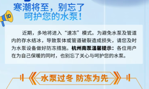 杭州南泵溫馨提示:各位用戶在為自己保暖的同時,也別忘了關(guān)心與呵護(hù)您的水泵。